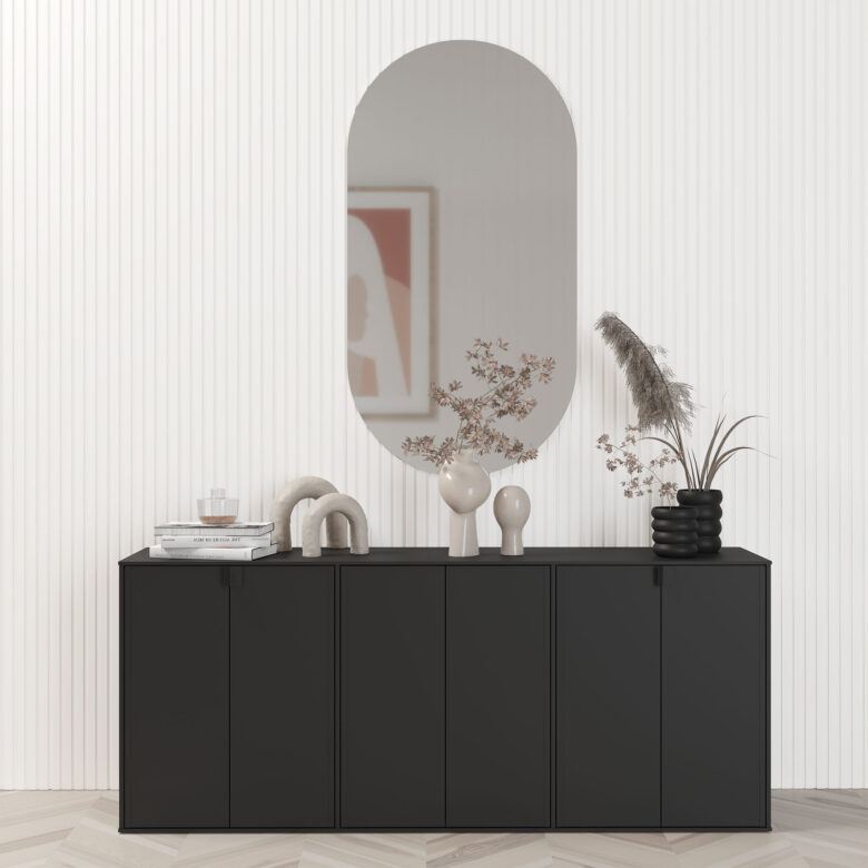Revêtement intérieur décoratif blanc à cinq bandes pour mur ou plafond. Les planches sont assemblées par rainure et languette pour créer un effet moderne de lattes.