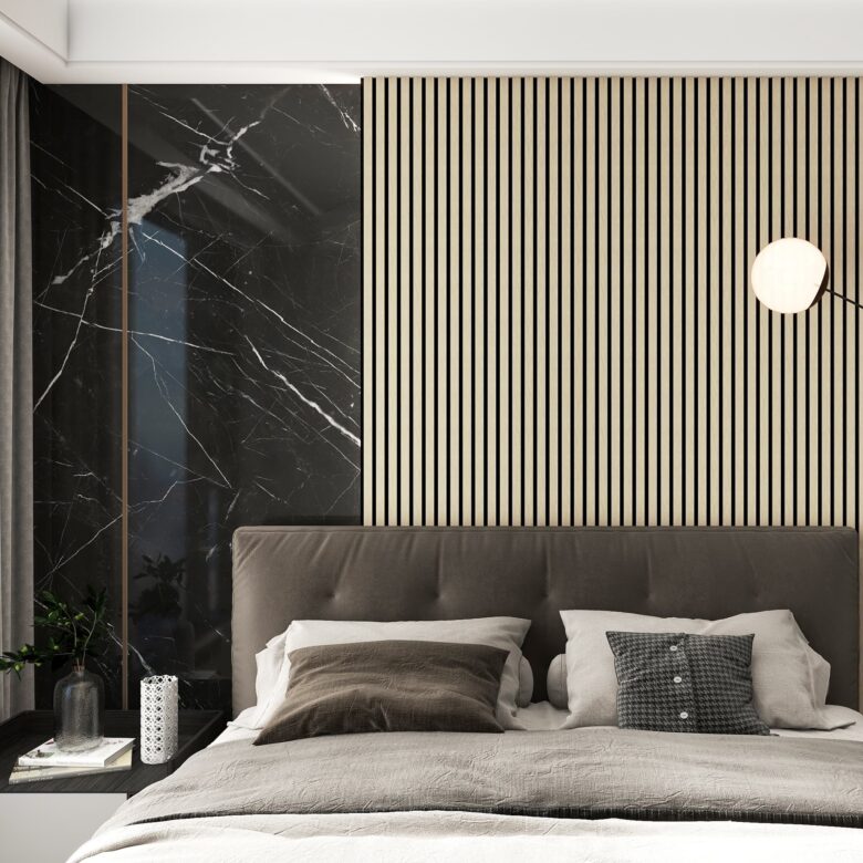 Panel acústico tono medio alistonado de 600 mm de ancho, diseñados para alto rendimiento sonoro. Fabricados con base acústica y listones de MDF recubiertos de chapa, ofrecen durabilidad y elegancia.